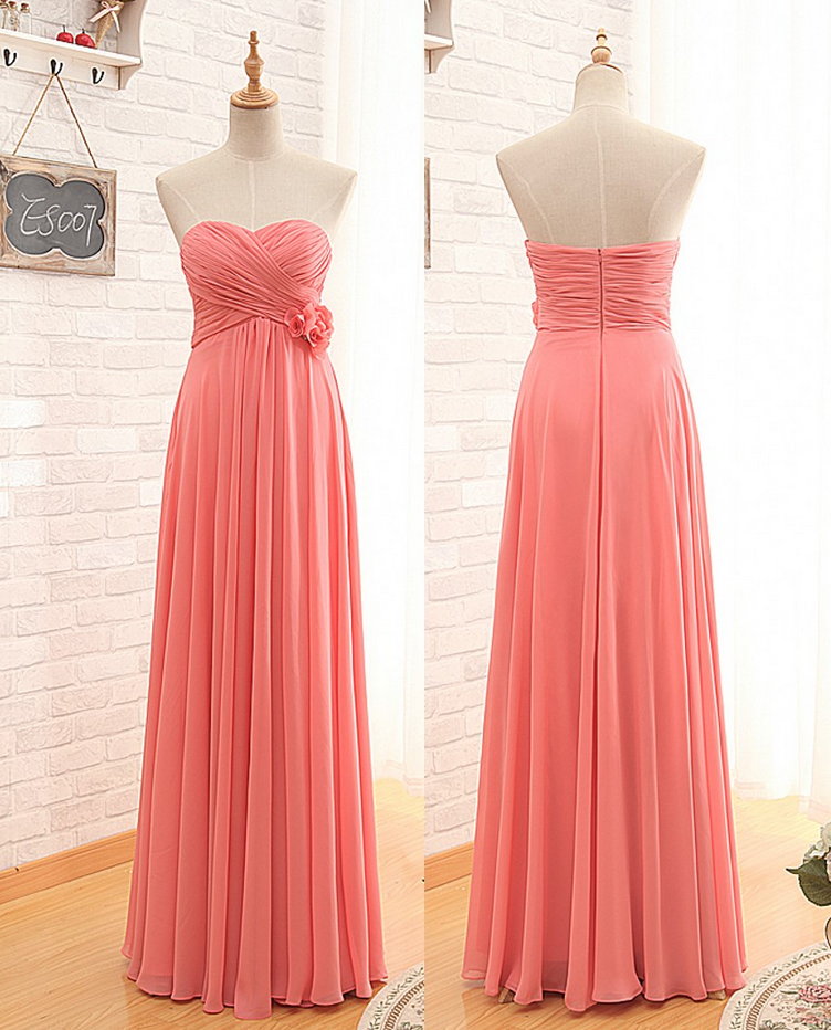 Coral Bridesmaid Dresses, Wedding Party Dresses, Long Party Dresses, Simple Prom Dresses, Simple Chiffon Prom Dresses