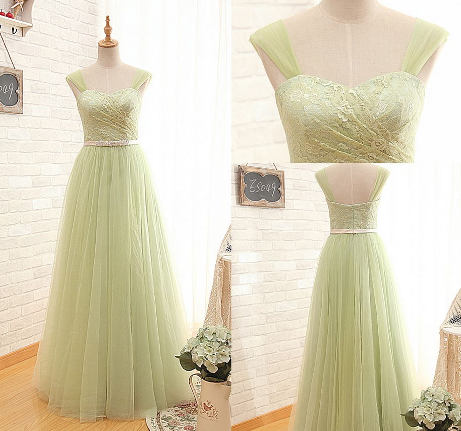 Mint Green Lace Prom Dress,Tulle Prom Gown,Straps Party Dress,Mint Green Lace Bridesmaid Dress