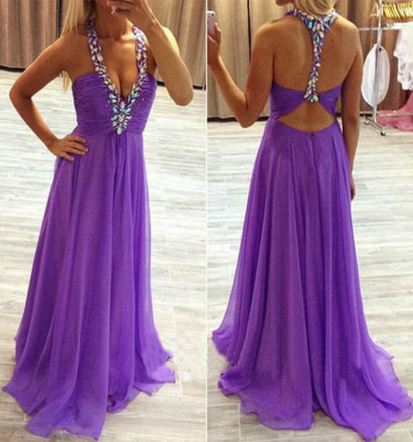 Sexy Backless Prom Dresses,Beaded Halter Purple Graduation Dresses,Sexy Evening Party Dresses, Purple Bridesmaid Dresses, Wedding Party Dresses