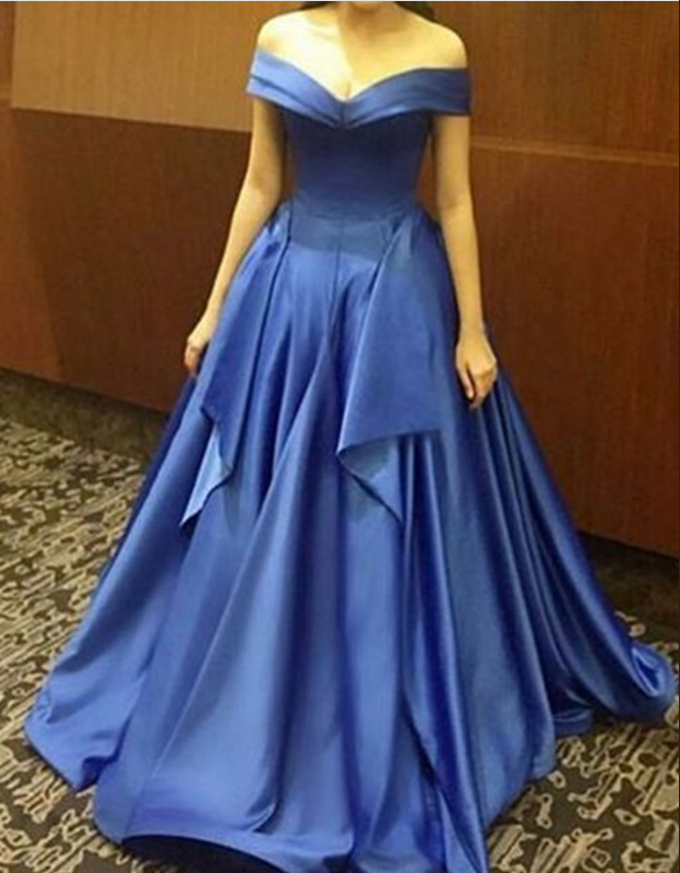Formal Evening Dress, Noble Evening Dresses, Long Satin Evening Dresses, Blue Evening Dresses,Off Shoulder Evening Dresses