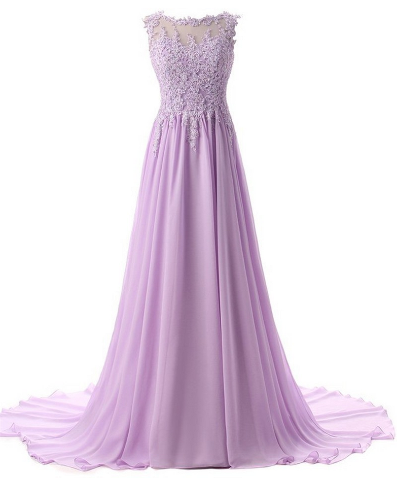 Lace Appliques Elegant Purple Chiffon Evening Prom Dresses, Purple Bridesmaid Dresses, Wedding Guest Dresses