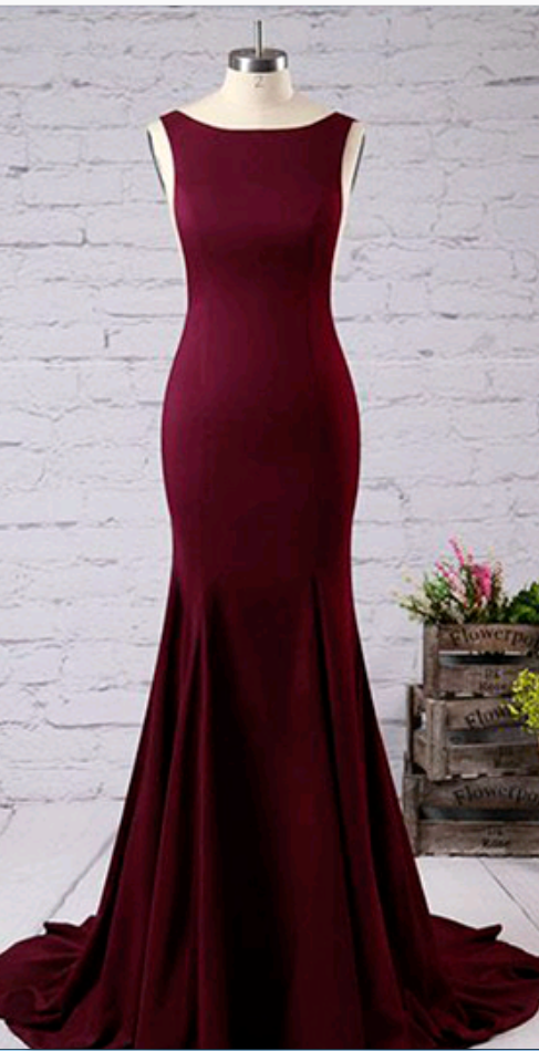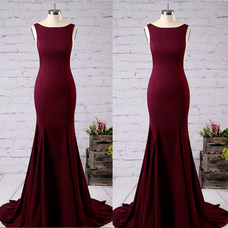 Sleeveless Prom Dress, Mermaid Satin Long Prom Dresses, Burgundy Prom Dresses, Burgundy Bridesmaid Dresses