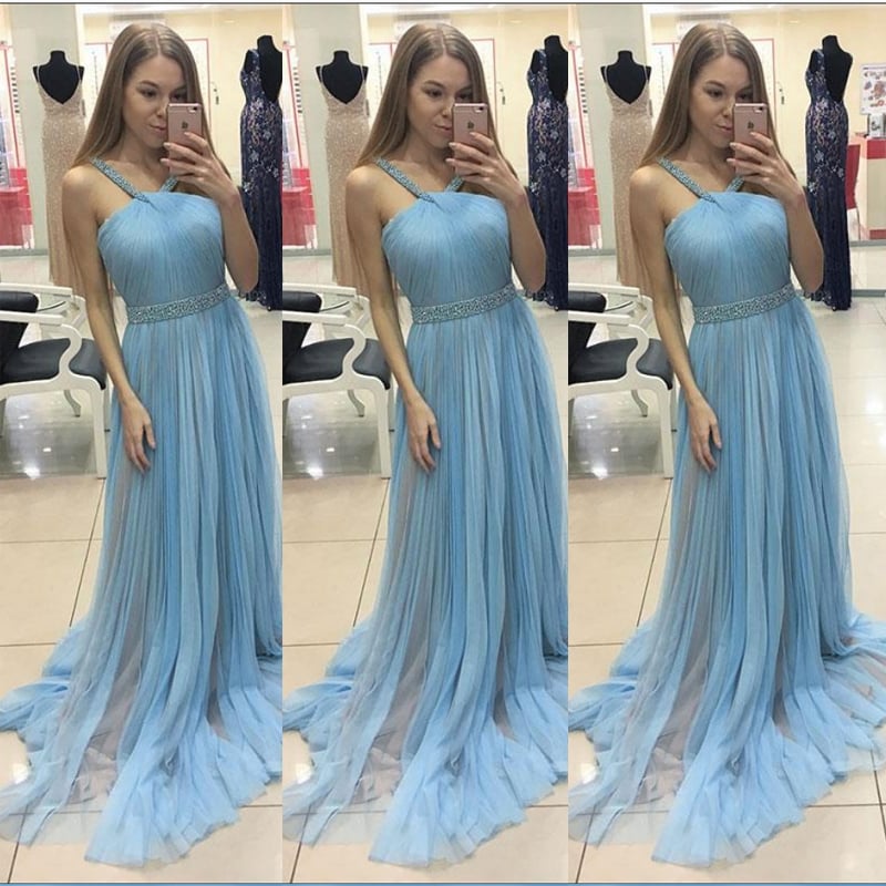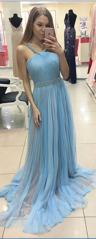 Simple Blue Tulle Long Prom Dress, Tulle Evening Dress, Blue Bridesmaid Dresses, Wedding Guest Dresses