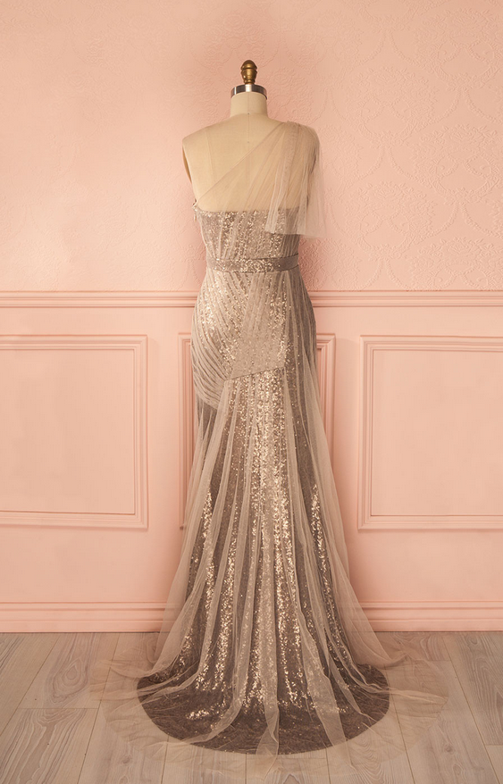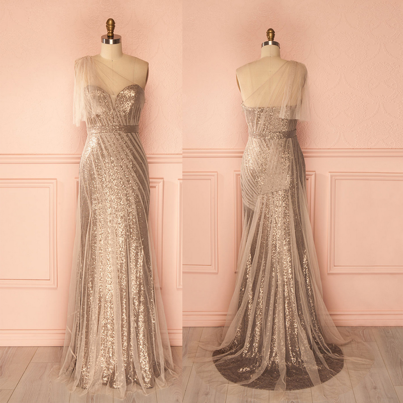 Gold Long Mermaid Evening Dresses, Gold Bridesmaid Dresses, Wedding Guest Dresses, Long Party Dress