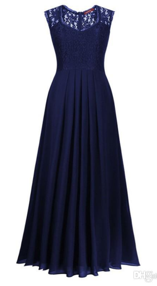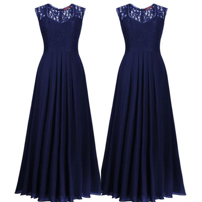 Vestidos de Festa Longo A line V Neck Chiffon Navy Blue Evening Dresses See Through Back Navy Lace Evening Gowns Cheap