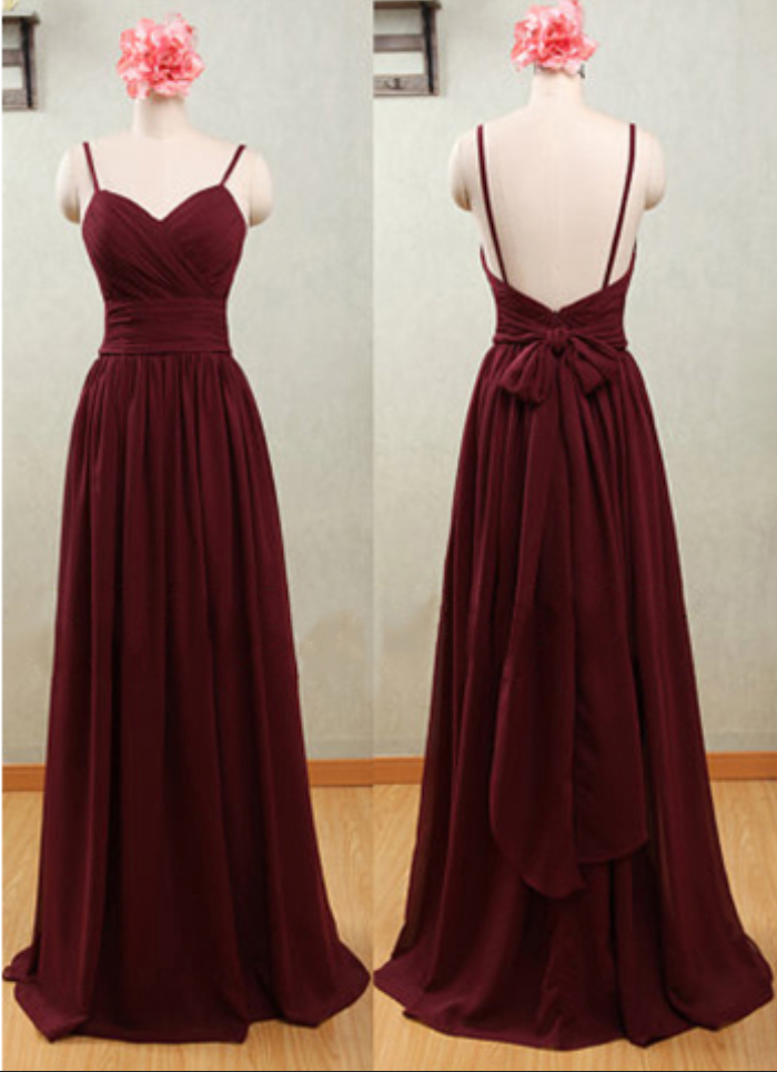 Burgundy Bridesmaid Dresses, Sexy Backless Bridesmaid Dresses, Chiffon Sweetheart Bridesmaid Dresses