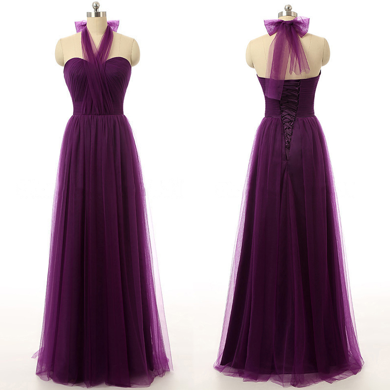 Halter Dark Purple Bridesmaid Dresses, A-line Wedding Guest Dresses, Long Party Dresses