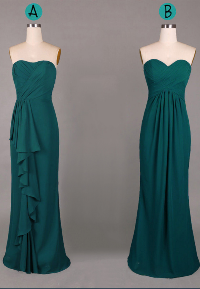 Hunter Green Bridesmaid Dresses, Sweetheart Sheath Chiffon Bridesmaid Gowns with Ruffles, Dark Green Cheap Bridesmaid Dresses