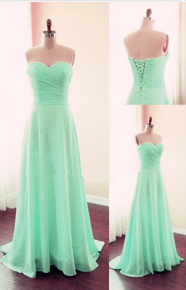 Simple Sweetheart Long Chiffon Mint Green Lace-up Prom Dresses, Mint Bridesmaid Dresses, Evening Gowns