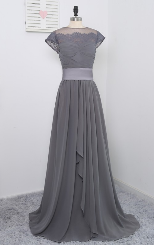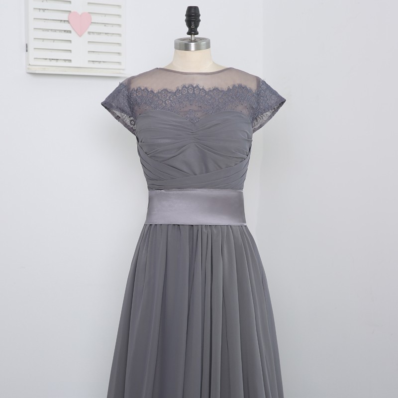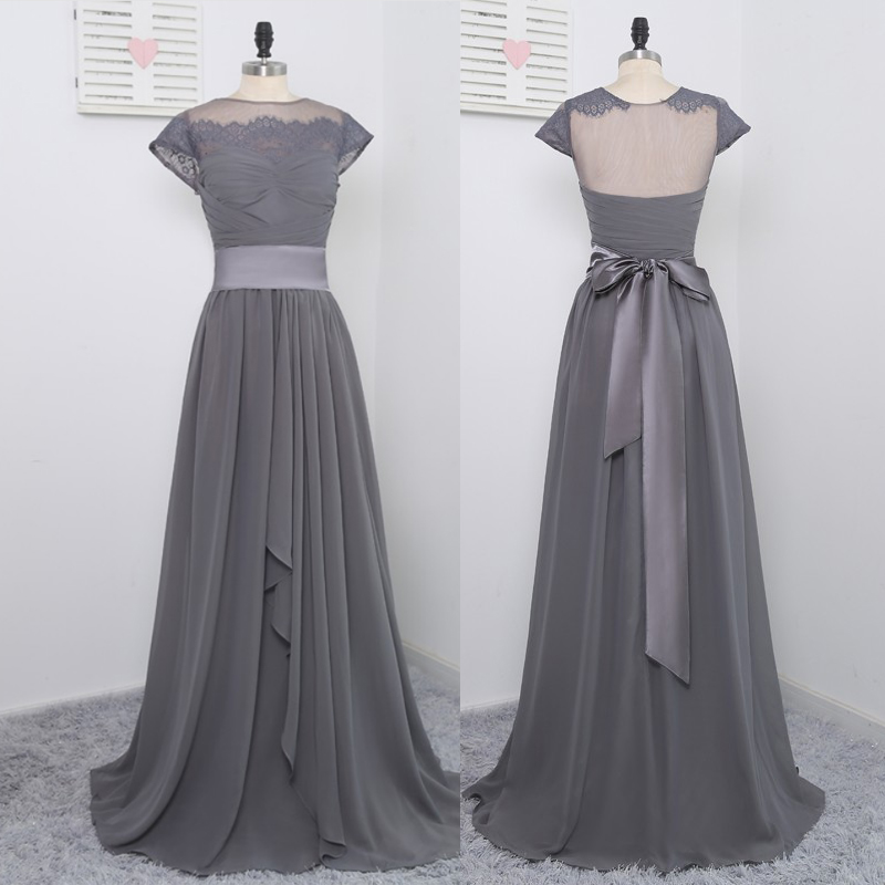 Gray Bridesmaid Dresses, Modest Bridesmaid Dresses, Long Maid of Honor Dresses