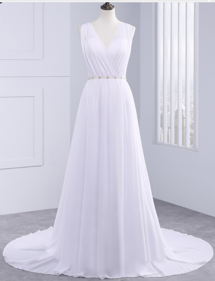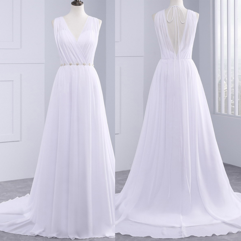 Beach Wedding Dresses, Ivory Chiffon Wedding Dresses, Simple Wedding Gowns, Modest Bridal Dress