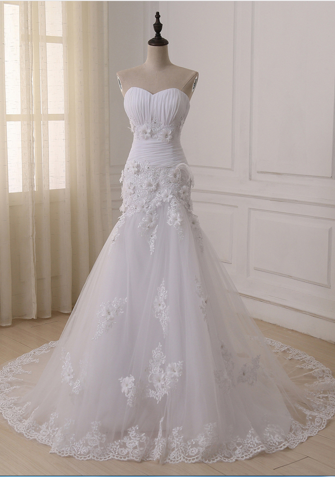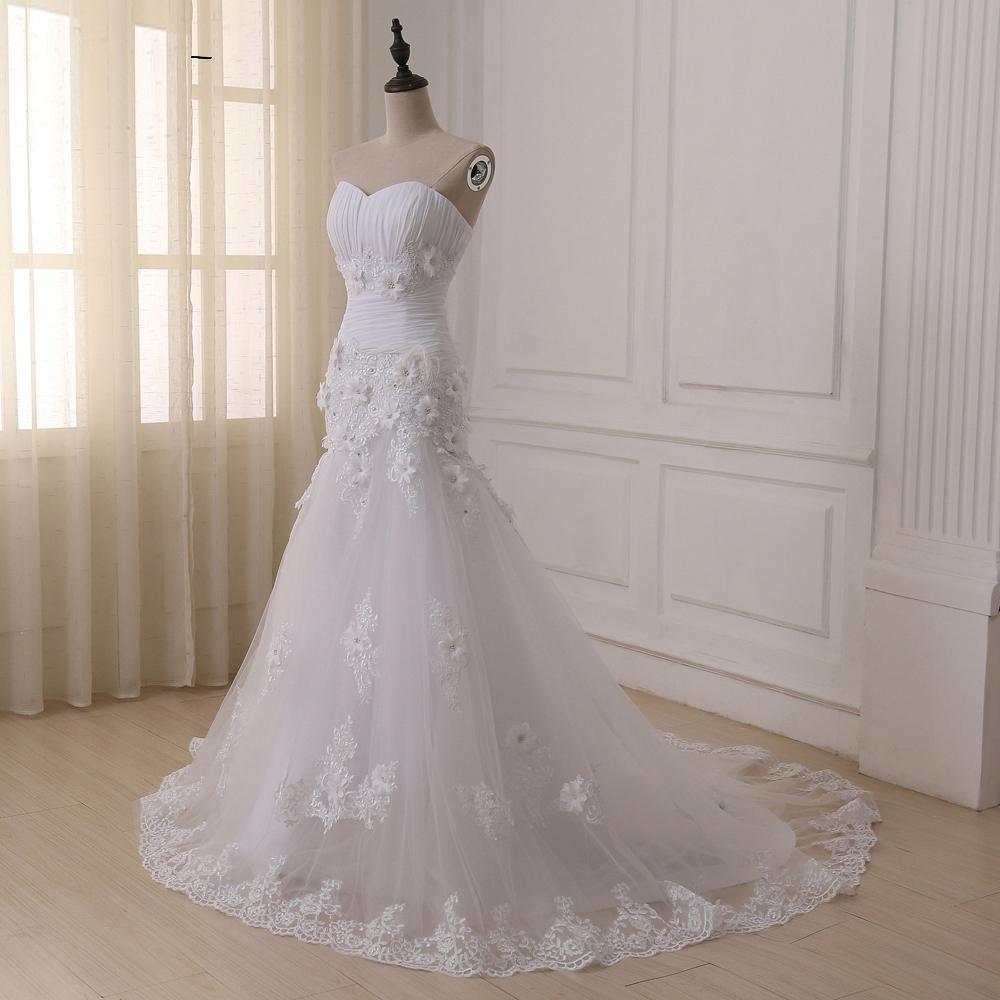 Floral Luxurious Lace Appliques Flowers Mermaid Wedding Dress Corset Bodice Top Quality Pleat Sweep Train Tulle Bridal Wedding Dresses Gown
