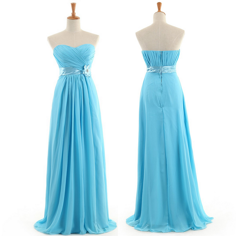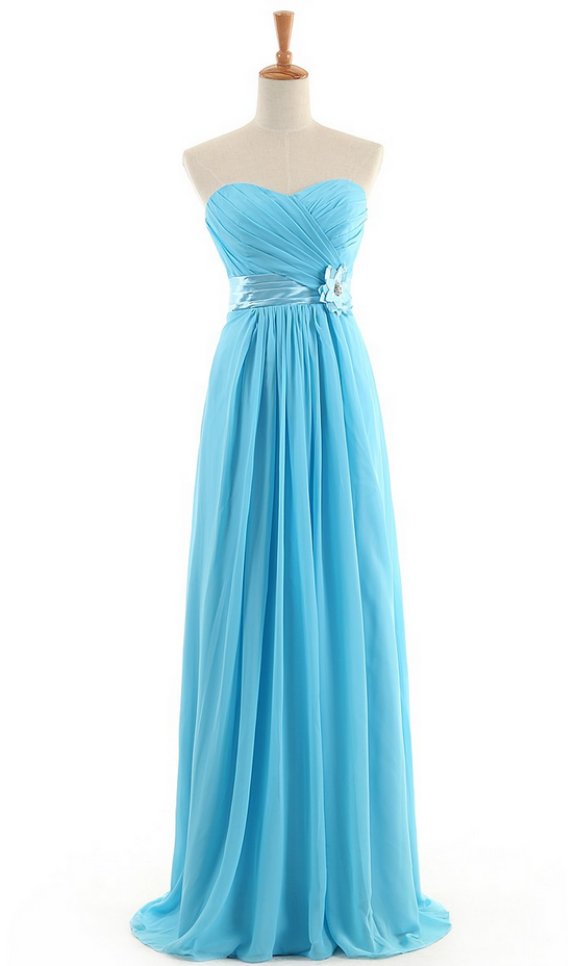 Blue Bridesmaid Dresses, A-Line Sweetheart Floor-length Chiffon Bridesmaid Dresses