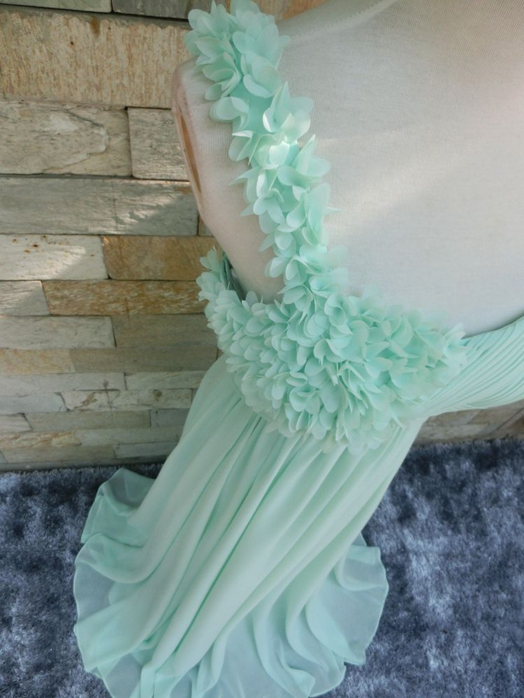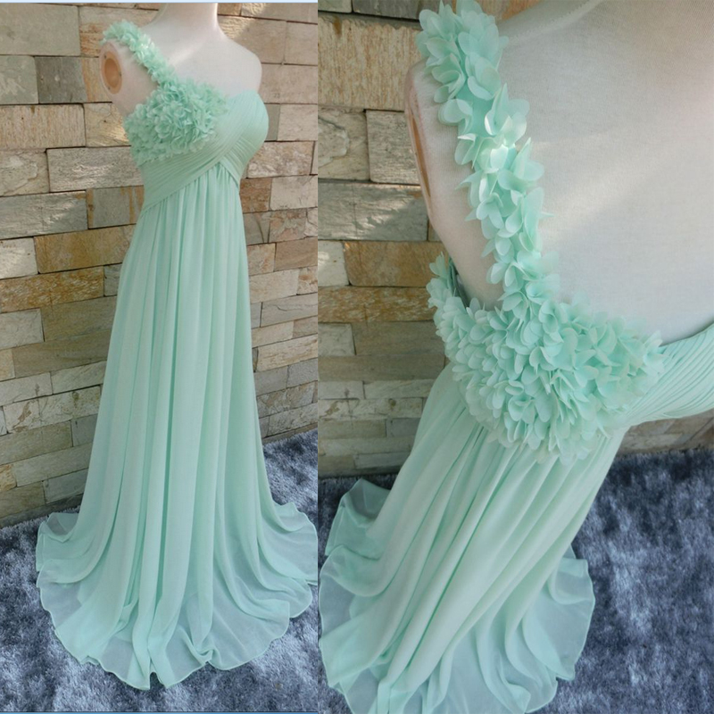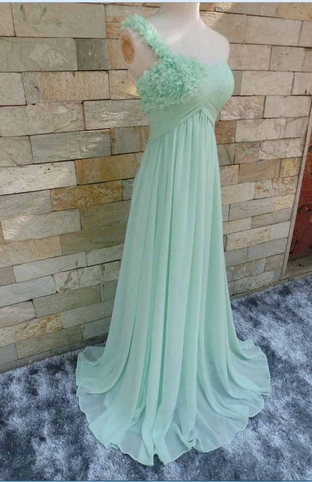 Mint Bridesmaid Dresses, One Shoulder Bridesmaid Dress Party Floor Length Dress Cheap Pleated Chiffon A Line Bridesmaid Dress