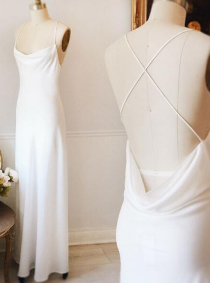 Spaghetti Strap White Open Back Prom Dress,Criss Cross Long Prom Dress,Chiffon Evening Dress,Elegant Formal Dress