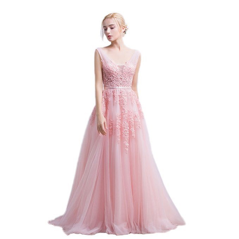 Light Pink Prom Dresses with Beaded Lace Appliques, Formal Dresses, Elegant Evening Dresses, Party Dresses