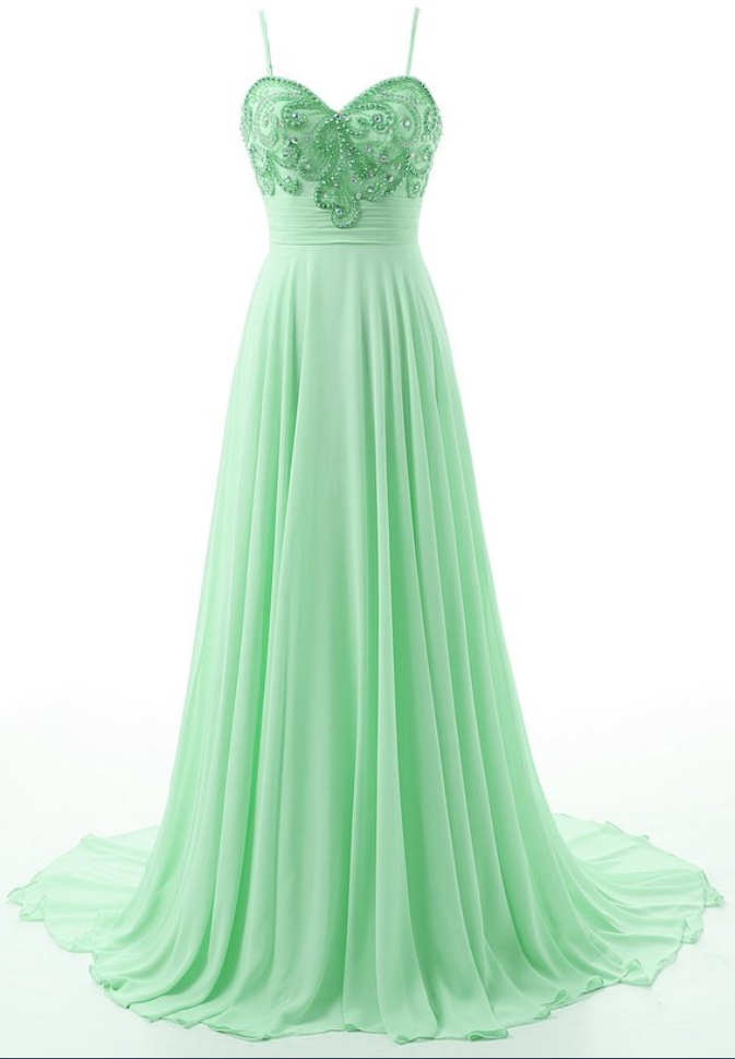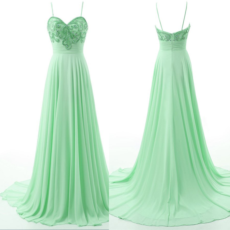 Mint Green Prom Dresses,Sexy A-Line Long Prom Gowns,Custom Made Beading Chiffon Evening Dresses,Mint Bridesmaid Dresses, Wedding Guest Dresses