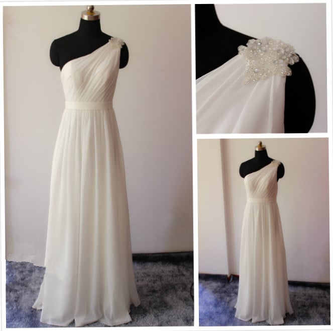 White Bridesmaid Dresses, Wedding Guest Dresses, White One Shoulder Chiffon Prom Dresses White Prom Gowns Evening Gowns Formal Gowns Party Dresses