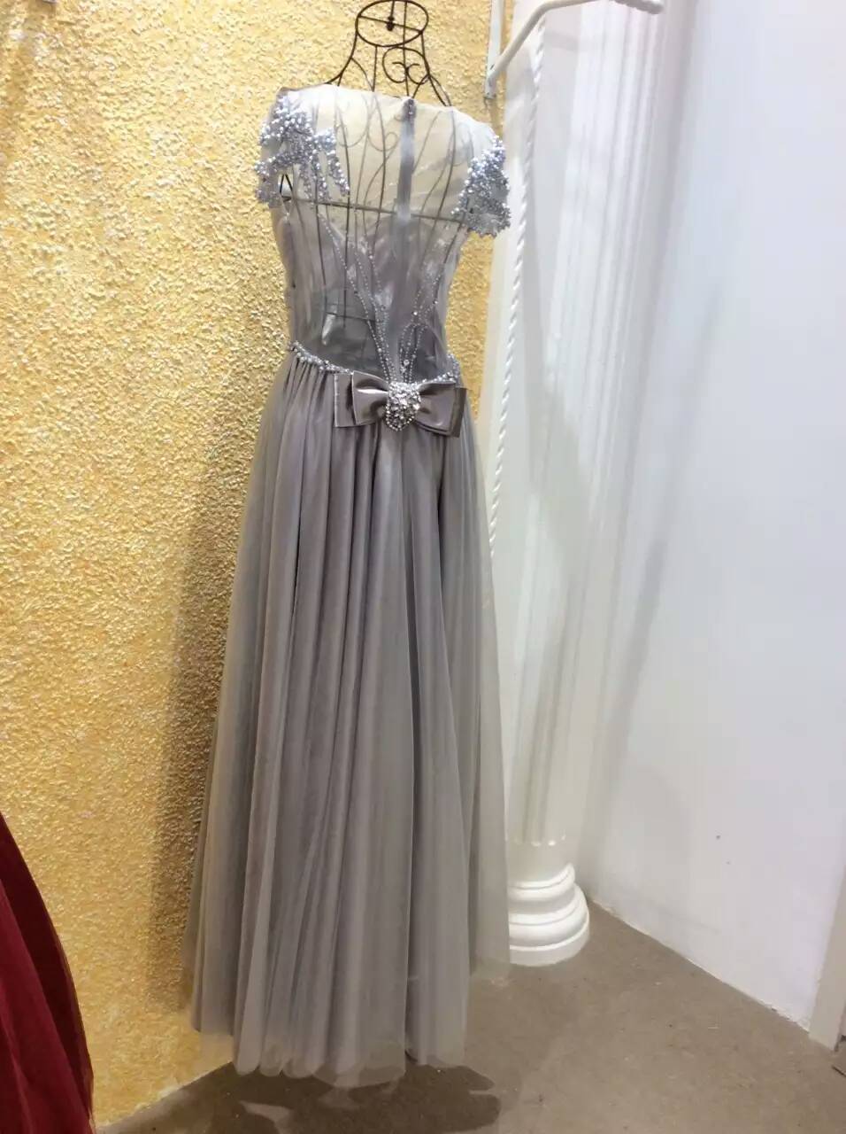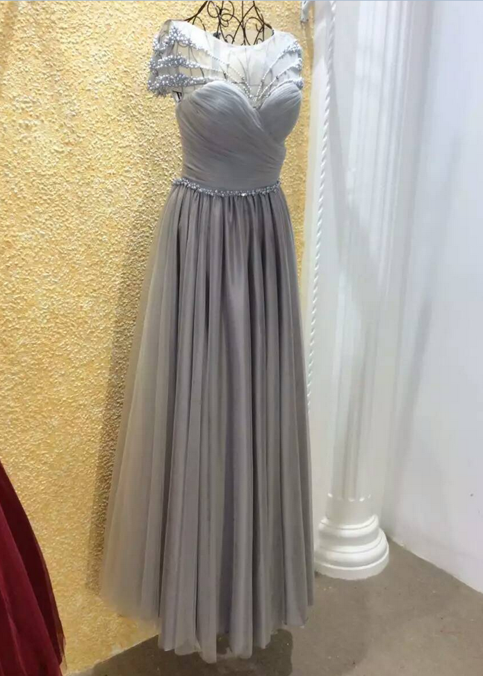 Gray Evening Dress, Gray Prom Dresses, Wedding Party Dresses, Formal Dresses, Wedding Guest Dresses, See Through Prom Dresses