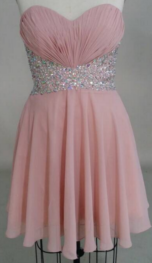 Wedding Party Dresses, Wedding Guest Dress, Pink Beading Homecoming Dress,Strapless Short Homecoming Dresses