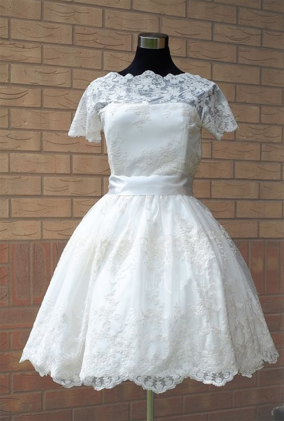 Short Wedding Dress, Short Lace Wedding Dress, Short White Wedding Dresses, Short Wedding Dresses with Sleeves, Short Beach Wedding Dresses