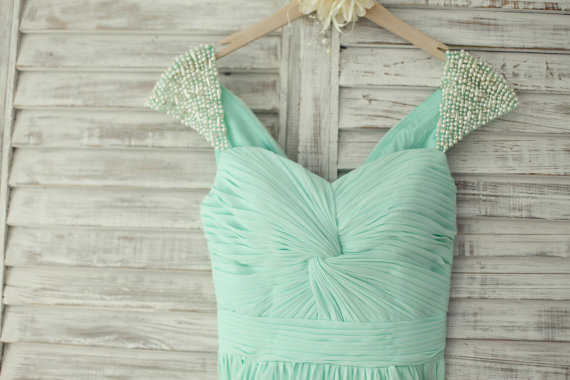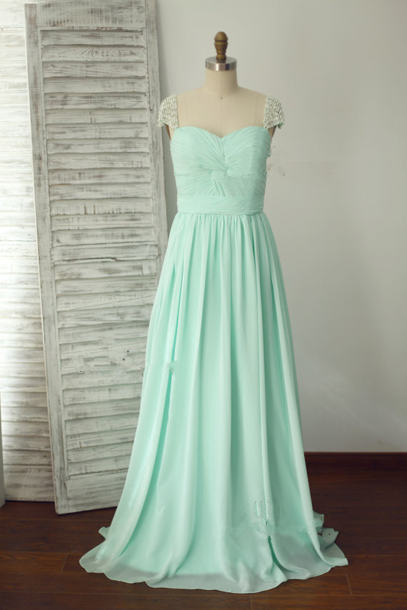 Elegant Party Dresses, Long Bridesmaid Dresses with Cap Sleeve, Wedding Party Dresses, Wedding Evening Dress