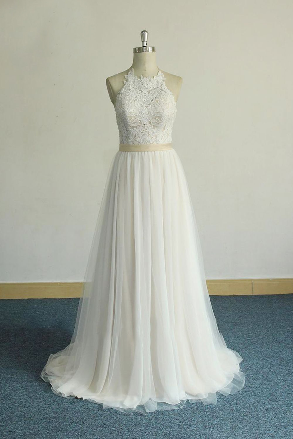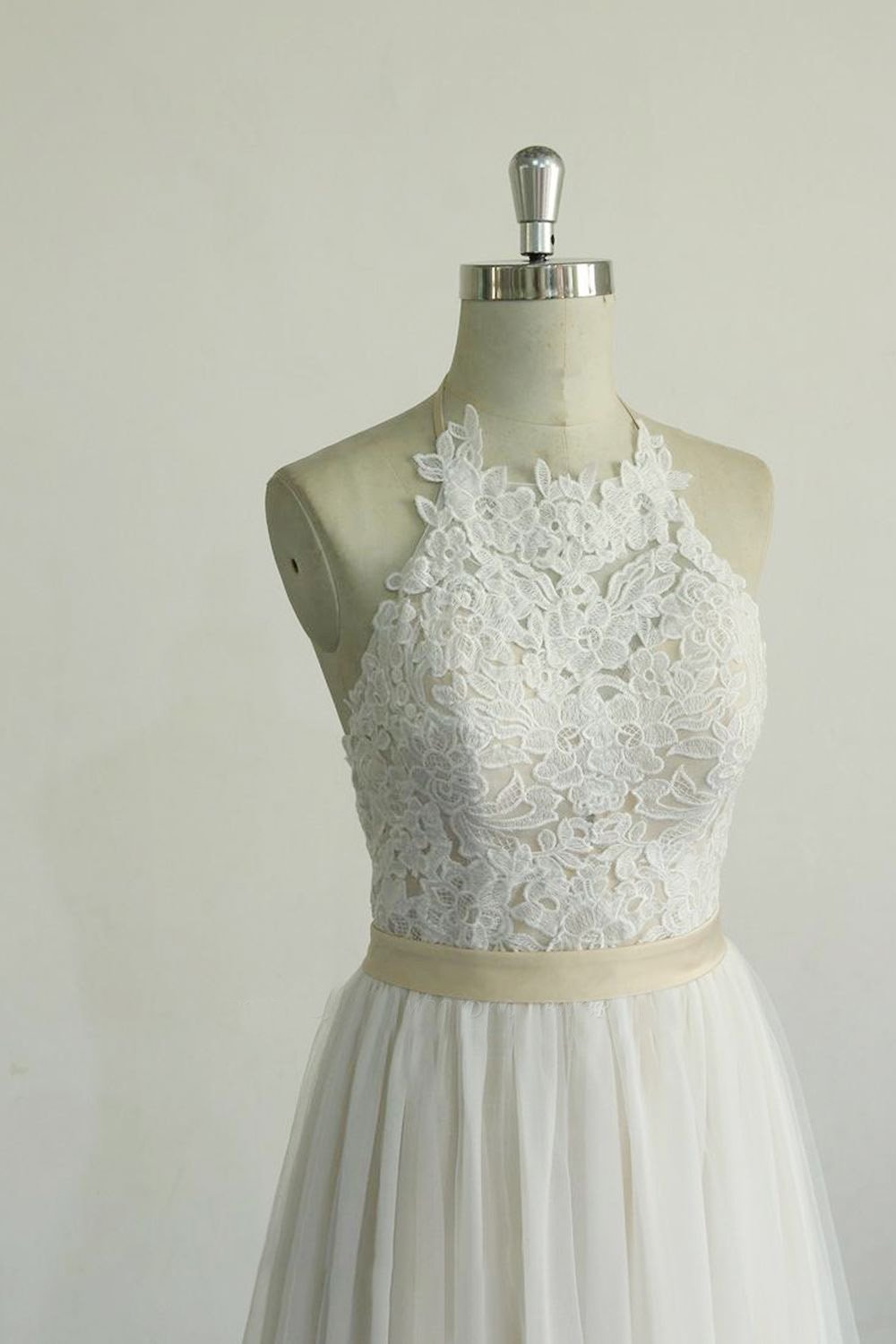 Ivory Tulle A-Line Wedding Dresses with Lace Appliques Boho Beach Bridal Gowns