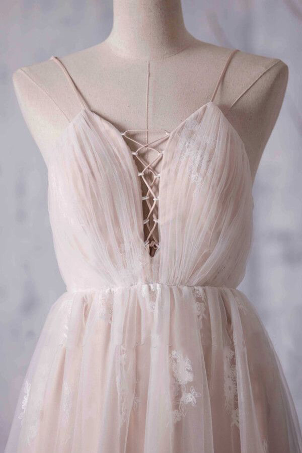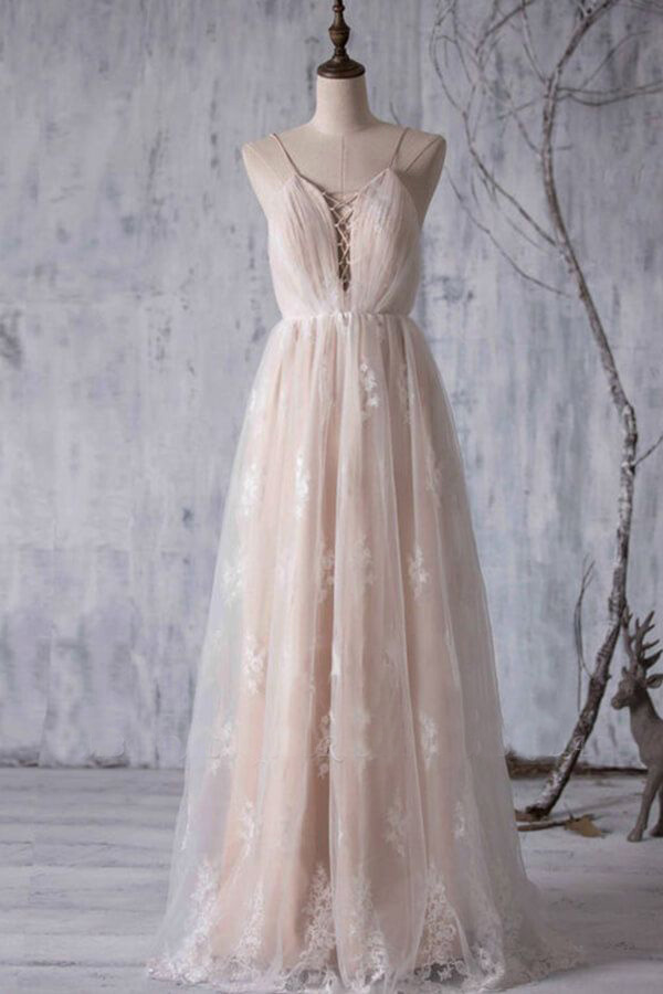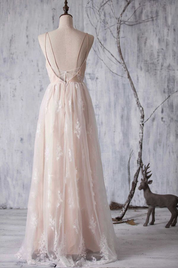 Spaghetti Straps A-Line Blush Wedding Dresses with Lace Appliques Bridal Gowns Online