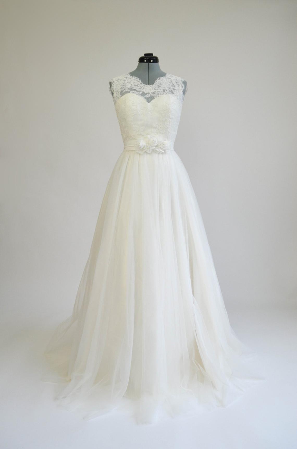 Jewel Neck White Beach Wedding Dresses with Sash Boho Bridal Gowns