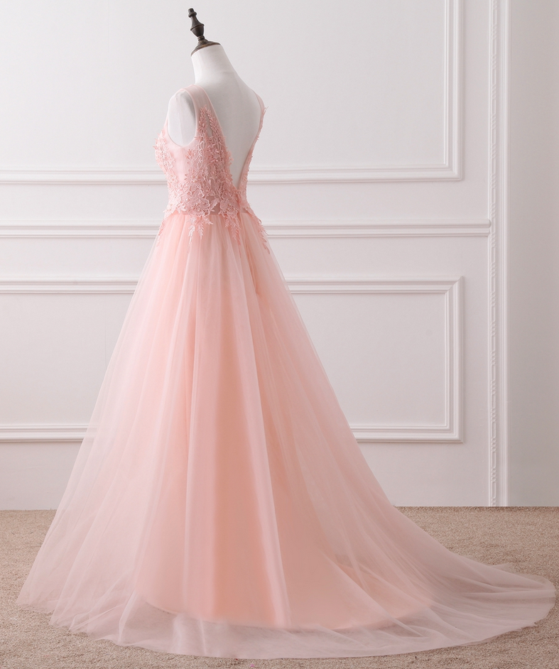 Pink Evening Dresses Bride Banquet Elegant Party Prom Dress with Lace Appliques