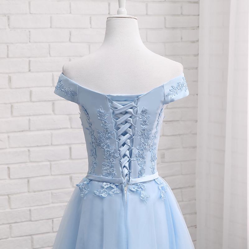 Blue Tea Length Bridesmaid Dress, Lovely Party Dress, Blue Prom Dresses