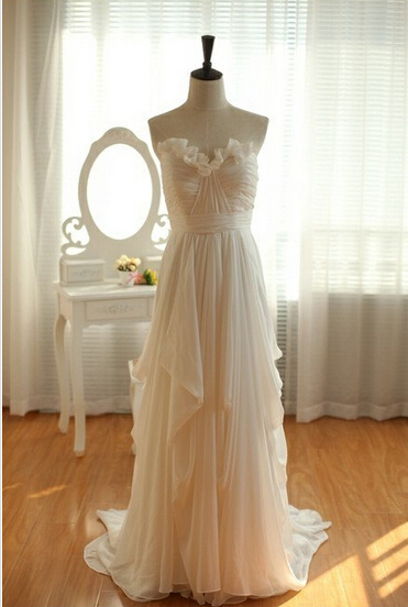 Ivory Sweetheart A-line Chiffon Bridal Dresses with Ruffled Skirt