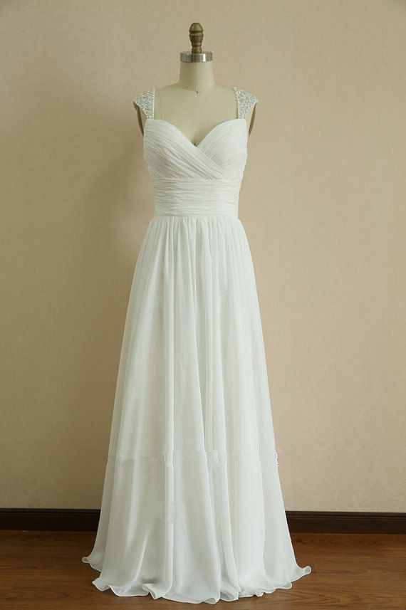 Lovely White Straps Chiffon Floor Length Sweetheart Prom Dresses, Bridesmaid Dresses, Evening Dresses, Party Dresses