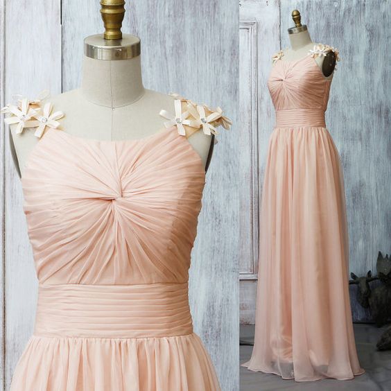 Long Chiffon Pink Prom Dresses with 3D Flowers