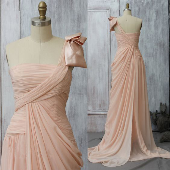One-shoulder Chiffon A-Line Pink Bridesmaid Dresses, Pretty Prom Dresses, Party Dresses