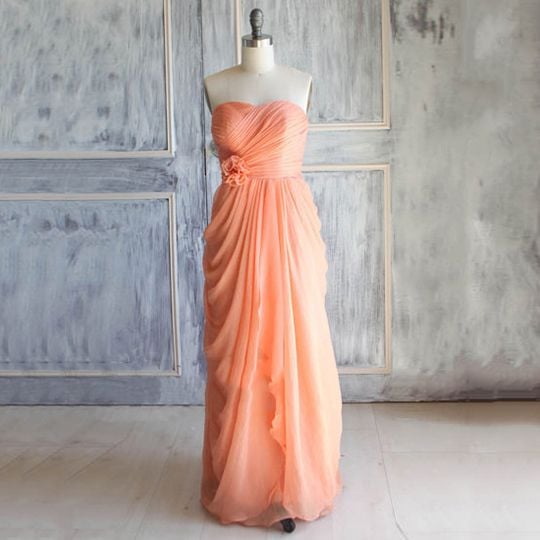 Orange Pink A-Line Sweetheart Bridesmaid Dresses with Pleats