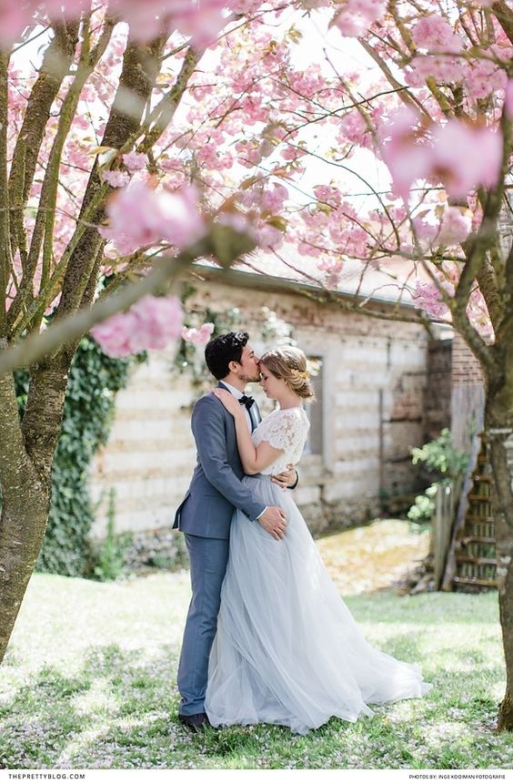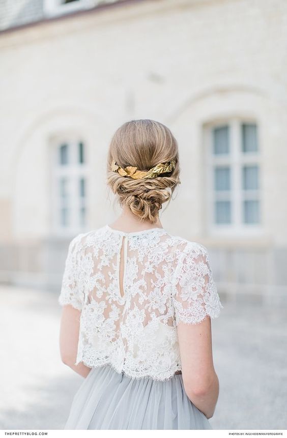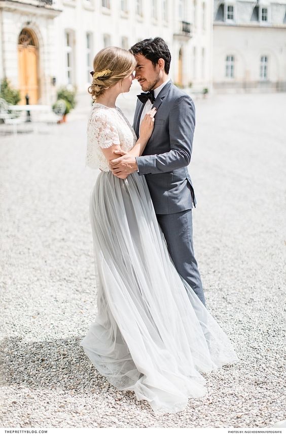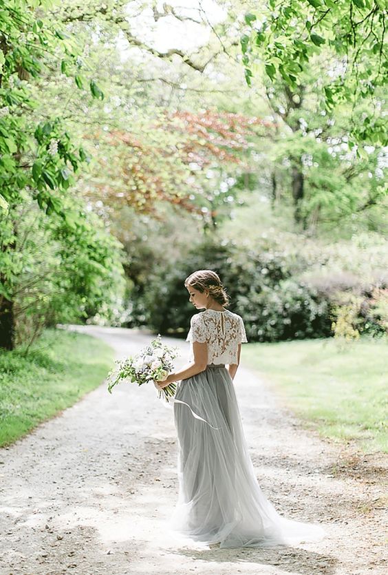 White and Dusty Blue 2-Pieces Wedding Dresses, 2 in 1 Wedding Gown