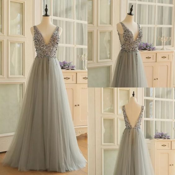 Beaded Prom Dresses, Light Silver Evening Dresses, Sexy Prom Dresses, Long Homecoming Dresses, Wedding Party Dresses, Bridal Party Dress